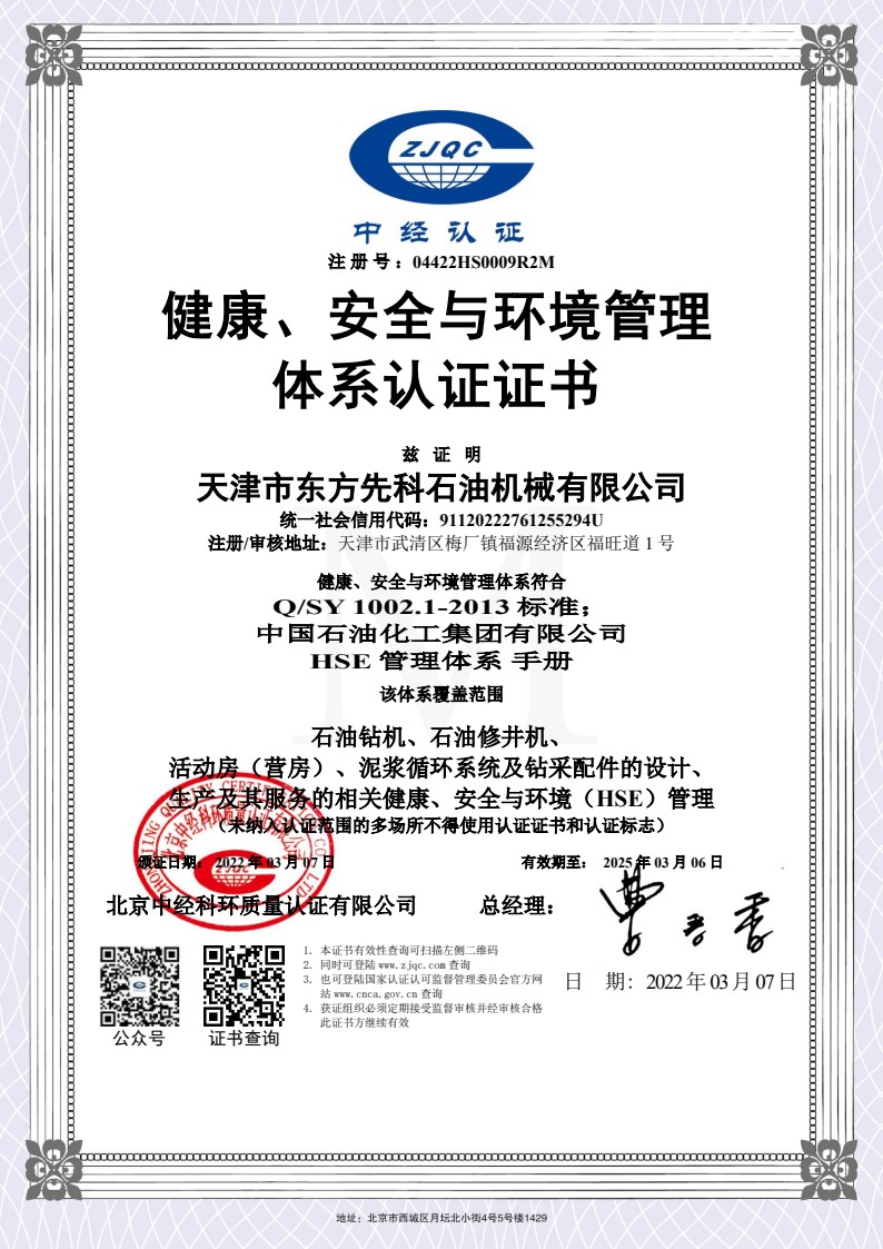 健康、安全與環境管理體系認證證書英文