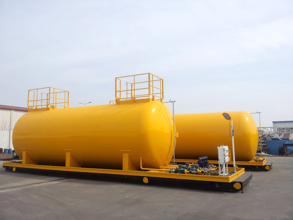 柴油罐是為鉆機動力機(柴油機、發電機等)提供儲備燃油的專用設備,油罐主要由底座、油罐、管道離心油泵、過濾器、流量計、液位計、管匯、不銹鋼球閥等部件組成。