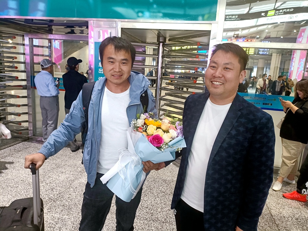 2023年5月6日,東方先科駐蘇丹工作的3名員工在中國(guó)駐蘇丹大使館的統(tǒng)一安排下從蘇丹首都喀土穆平安回國(guó)。東方先科指派市場(chǎng)部門負(fù)責(zé)人及相關(guān)人員前往車站迎接,并送上鮮花和親切的問候!